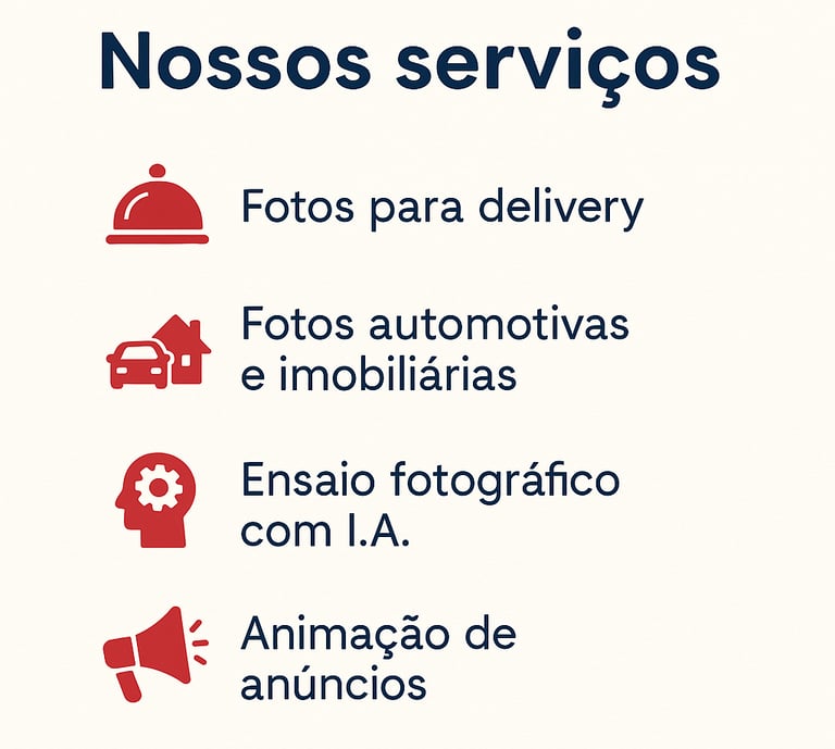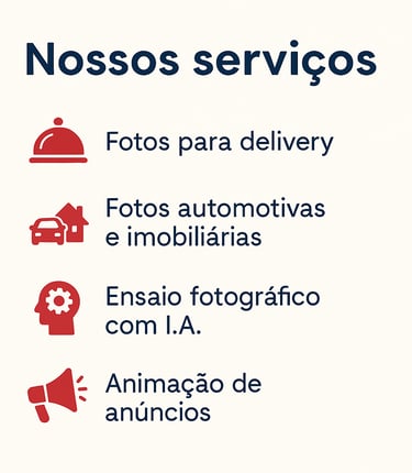 Atendemos diferentes segmentos — gastronomia, automotivo, imobiliário, e-commerce e até ensaios fotográficos digitais.